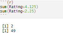 Let’s test in R how many of our Rating values are lower and higher than our lower and upper whiskers, respectively.