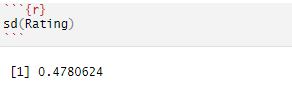 Standard deviation (SD) is a number that shows how much, on average, the variation of some random variable around its mean. In this case, the standard deviation or SD is 0.47, which means that the variation is about half of a grade/rating of the chocolate bars.