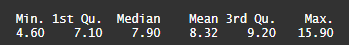 summary(data) #shows us 6 numbers - median, mean, min, max, 1st and 3rd quartile