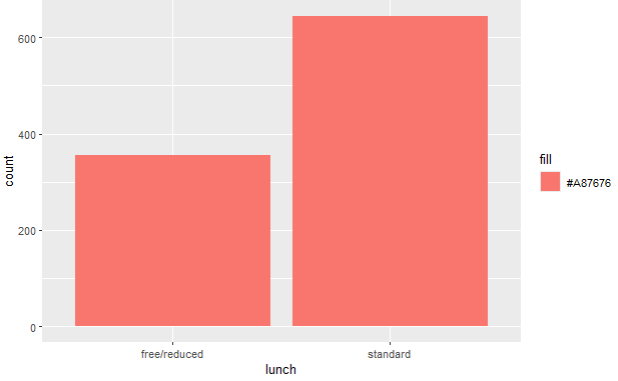 ggplot(data,aes(x=lunch,fill="#A87676")) + geom_bar()